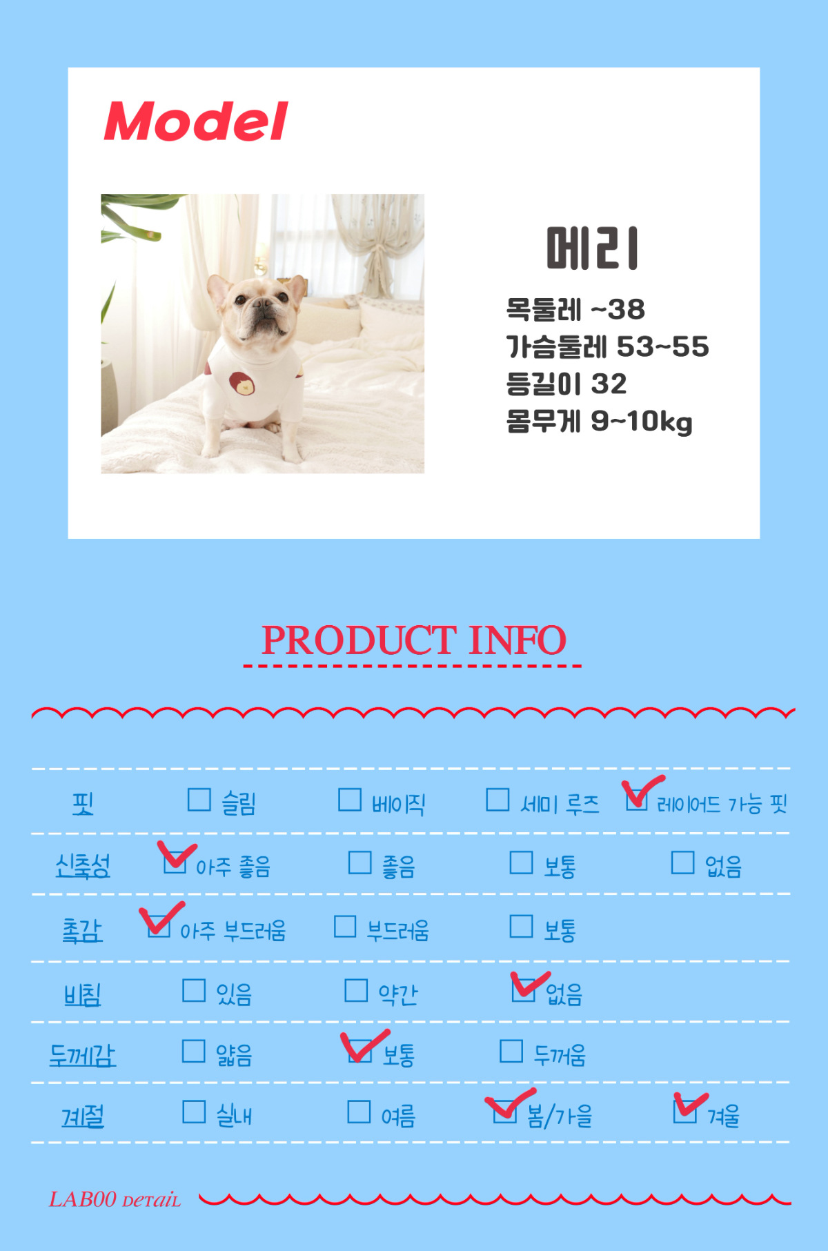*모델 메리 사이즈 : 목 38 가슴 53~55 등길이 32 FM 착용